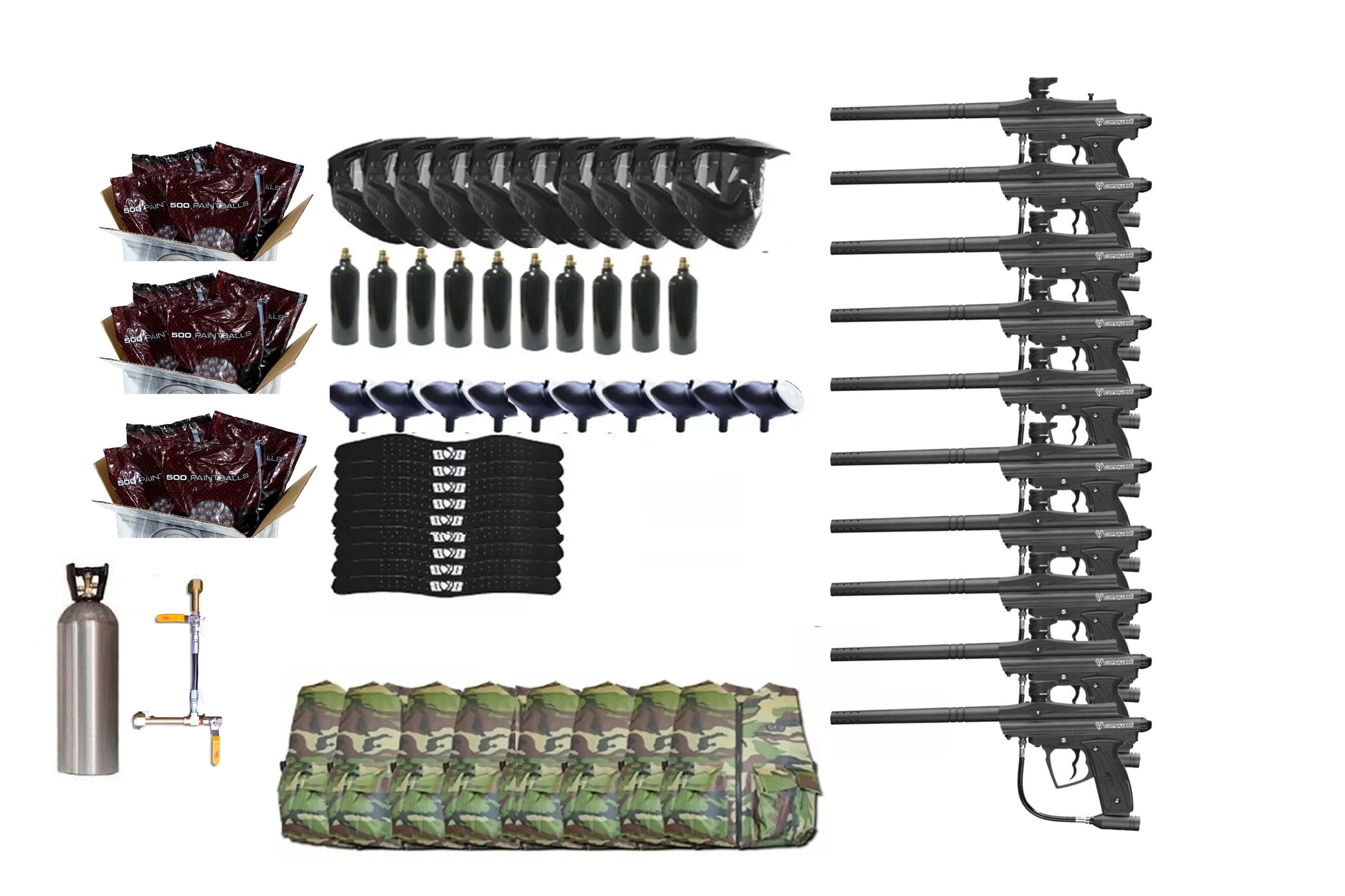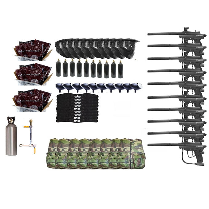 Recomendacion, los paquetes vienen con tanques de 9 oz, los podemos cambiar a unos de 12 por 200.00 cada tanque (es solo la diferencia en costo) , hacemos la recomendación, dado que las marcadoras son de buena potencia y el tanque de 9 oz te va a durar poco tiempo en juego, la finalidad del negocio es mantener a los jugadores jugando y utilizando paintballs.